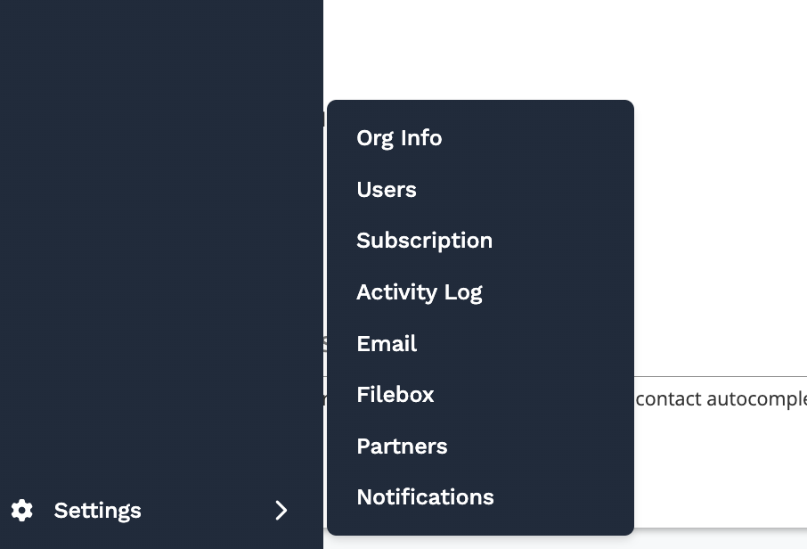 - Users: You can add new users to your account and give them a specific role to access all, or portions of the software. See the guide for Adding and Managing Users.