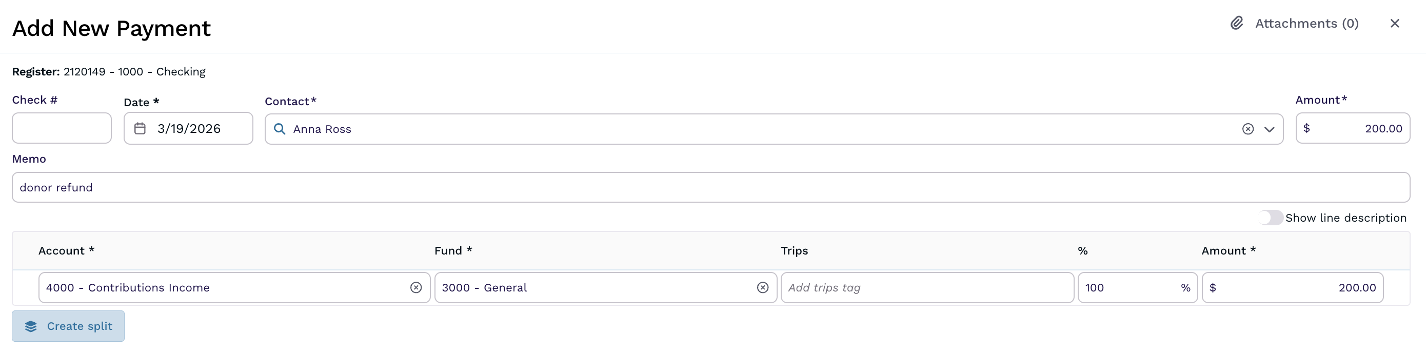 Whether you need to record a refund you received or a refund you issued, you can enter these transaction in the Register screen in the Fund Accounting area.