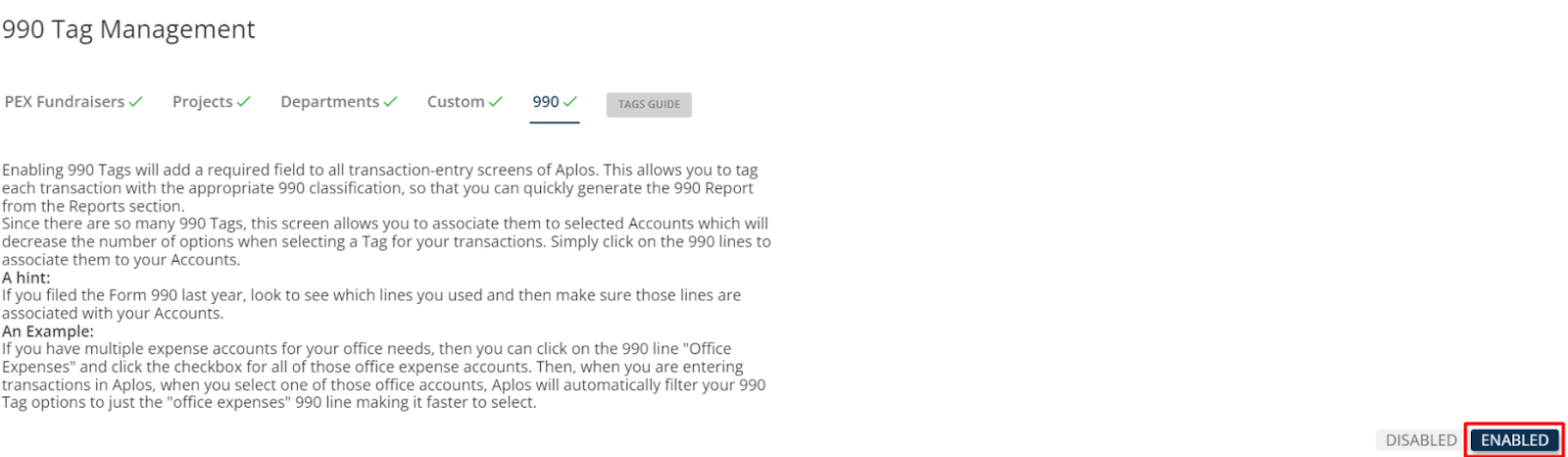 - You can enable this option to successfully retrieve 990 tags from Aplos.