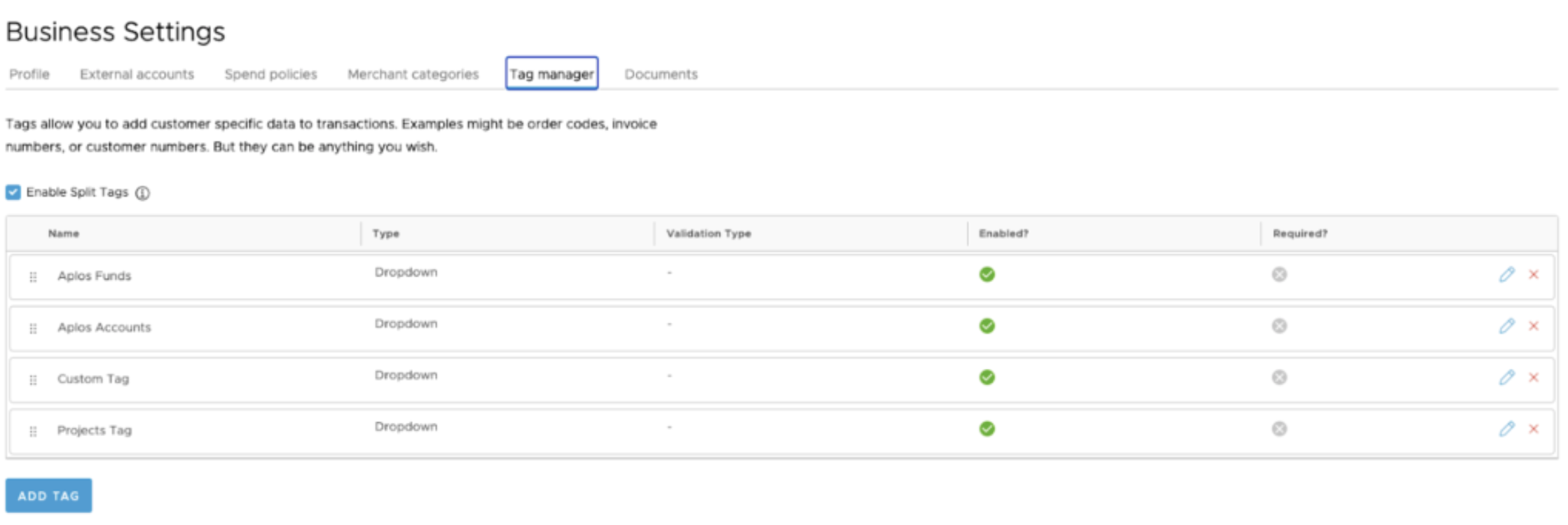 - Click “Add Tag,” and enter a name, such as “Aplos Accounts.”